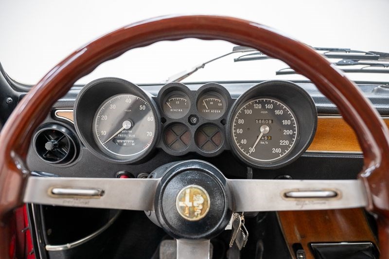 The Alfa Romeo 2000 GT Veloce, better known as the “Bertone” coupé, is one of the most iconic Italian sports cars of the 1970s. Designed by Giorgetto Giugiaro for Bertone, this coupé combines elegance with sportiness and delivers a pure driving sensation that still captivates today. This 1974 example underwent a professional restoration in the past and presents itself in good overall condition, with room for further optimisation.