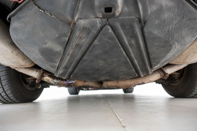 Underside: Superficial corrosion, heavy grease traces; oil leaks from power steering, engine, gearbox and rear axle; exhaust needs replacement.