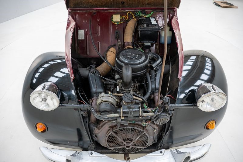 Interior: Original hood in good condition – driver’s seat torn, carpets very neat, small burn mark on rear seat, rust under driver’s mat