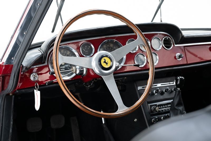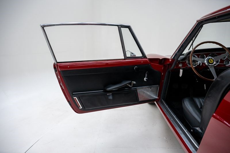 This particular example was delivered new in May 1962 to Carlos Kaufmann C.A. Venezuela, a well-known and influential Ferrari importer in South America – a detail that only increases the historical value of this car. The bodywork was originally finished in the elegant colour Rosso Rubino (16119 MM), a deep and warm shade that beautifully enhances the lines of the 250 GT.