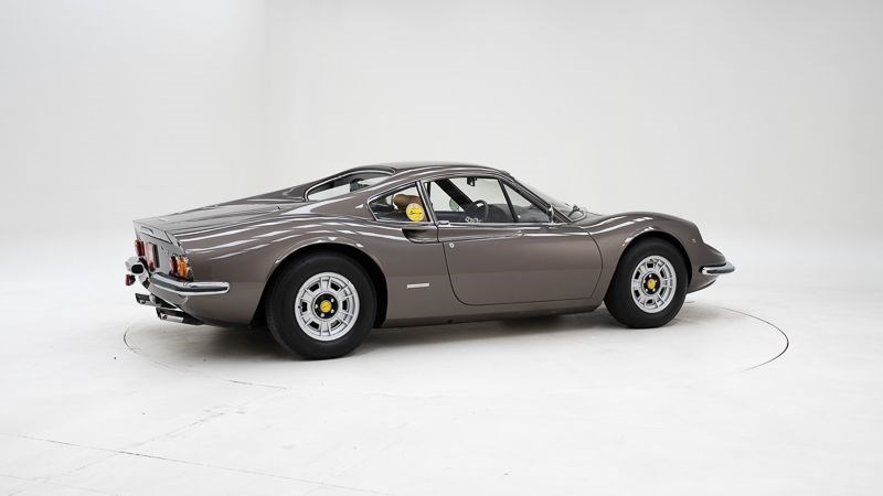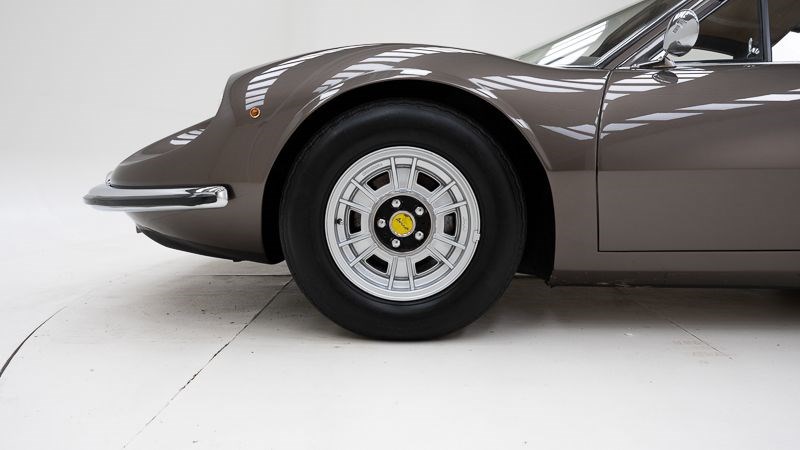 The timeless bodywork by Pininfarina is widely regarded as one of the most beautiful sports car designs of all time. Its flowing lines, compact proportions and perfect visual balance give the Dino a timeless elegance. This particular example is further enhanced by its exceptionally rare Marrone Dino Metallizzato colour, produced in very limited numbers.
