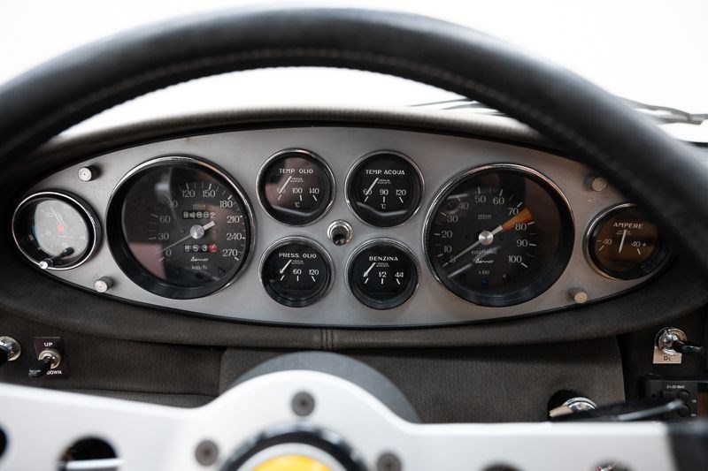 Among the rare features are the original factory air conditioning — an option seldom specified on the 246 GT and fully renewed in 2025 — as well as the specific front bumper and authentic “Swaters” wind deflector, further distinguishing this example from standard cars.