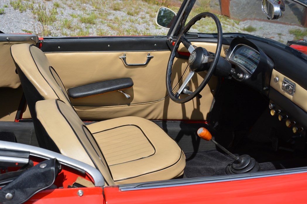 Binnen bood de 1200 Spyder plaats aan twee passagiers. Een nieuwigheid waren de draaibare stoelen , die naar buiten draaiden om het in- en uitstappen te vergemakkelijken. Er waren geen stoelen achterin. Gewoon de softtop onder een hoes. In tegenstelling tot zijn sedan-broer, had de cabrioletversie een ander dashboard, met een groter instrumentenpaneel en wijzerplaten onder een scherm. De versnellingspook werd op de vloer gemonteerd in plaats van achter het stuur.