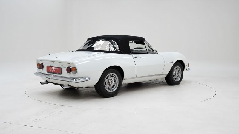 This Fiat Dino Spider 2.0, finished in elegant Bianco Polo Park, is among the most sought-after versions of the model. As a first-series example with central-lock Campagnolo wheels, an original interior and the legendary Ferrari V6 engine, it embodies the true spirit of the late-1960s Italian sports car – stylish, technically refined and mechanically alive.
