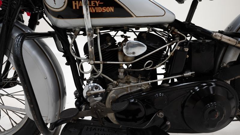 This particular example was originally delivered to the Chicago Police Department and likely comes from a very limited production year, as 1933 was one of Harley-Davidson’s lowest production years. After many years of active police service, the motorcycle was acquired and restored by Wayne “Pappy” Pierce, a renowned Harley-Davidson dealer and successful racer with more than 250 trophies to his name. His restoration was completed just in time for the motorcycle to appear in the Oscar-winning gangster film The Untouchables (1987) starring Kevin Costner.
