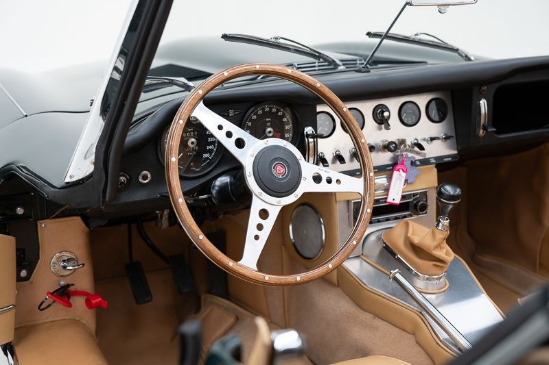 The Jaguar E-Type Series 1 3.8 OTS from 1962 is considered one of the most legendary sports cars of all time. With its timeless British Racing Green design, powerful 3.8-litre engine and open two-seater configuration, this example represents the ultimate British roadster experience. It underwent a recent professional restoration and is today presented in perfect condition.