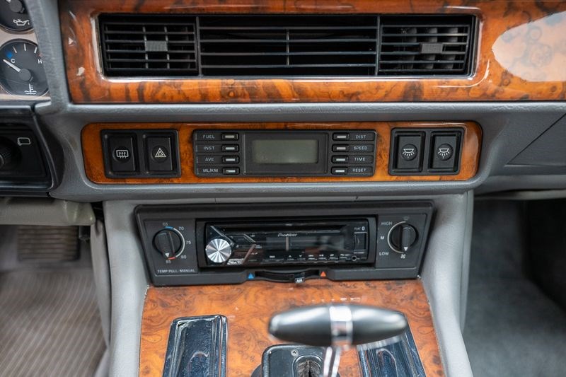 The Jaguar XJS, successor to the legendary E-Type, combines British refinement with Grand Tourer comfort. This 1991 example, fitted with the 4.0-litre six-cylinder engine and automatic gearbox, remains in a well-preserved original state – an honest car that reflects its age with dignity.