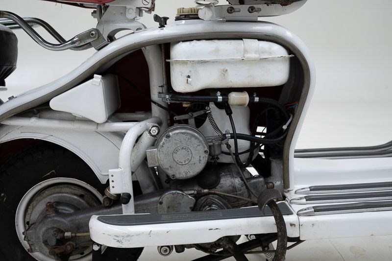 The 150D came only came in 2 colours Sand beige 8029 and a few examples from 1956 came in Light grey 8012. Engine and frame were once again painted in Aluminium Fiat 690.