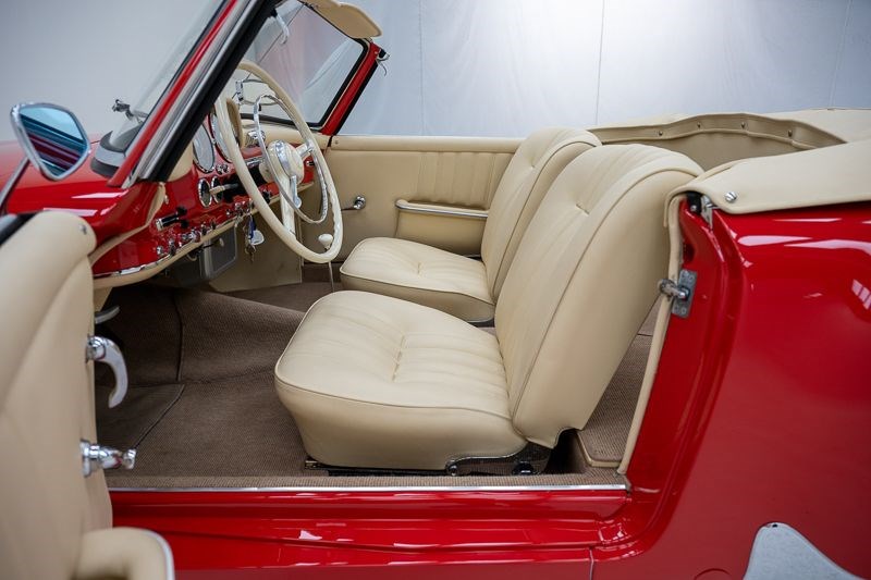 The Mercedes-Benz 190 SL is among the most elegant and sought-after roadsters of the 1950s. This 1956 example recently underwent a professional restoration and is presented in excellent condition. With its graceful lines, reliable engineering and stylish presentation, it is a valuable classic for collectors and enthusiasts of exclusive German convertibles.