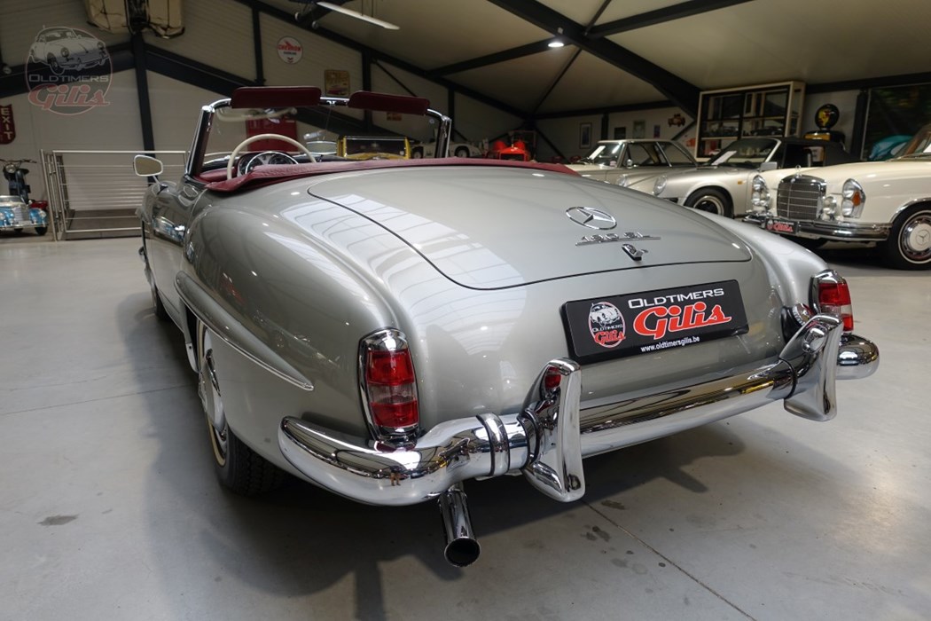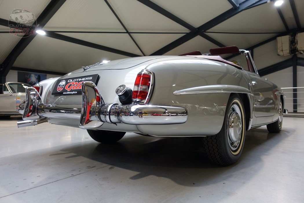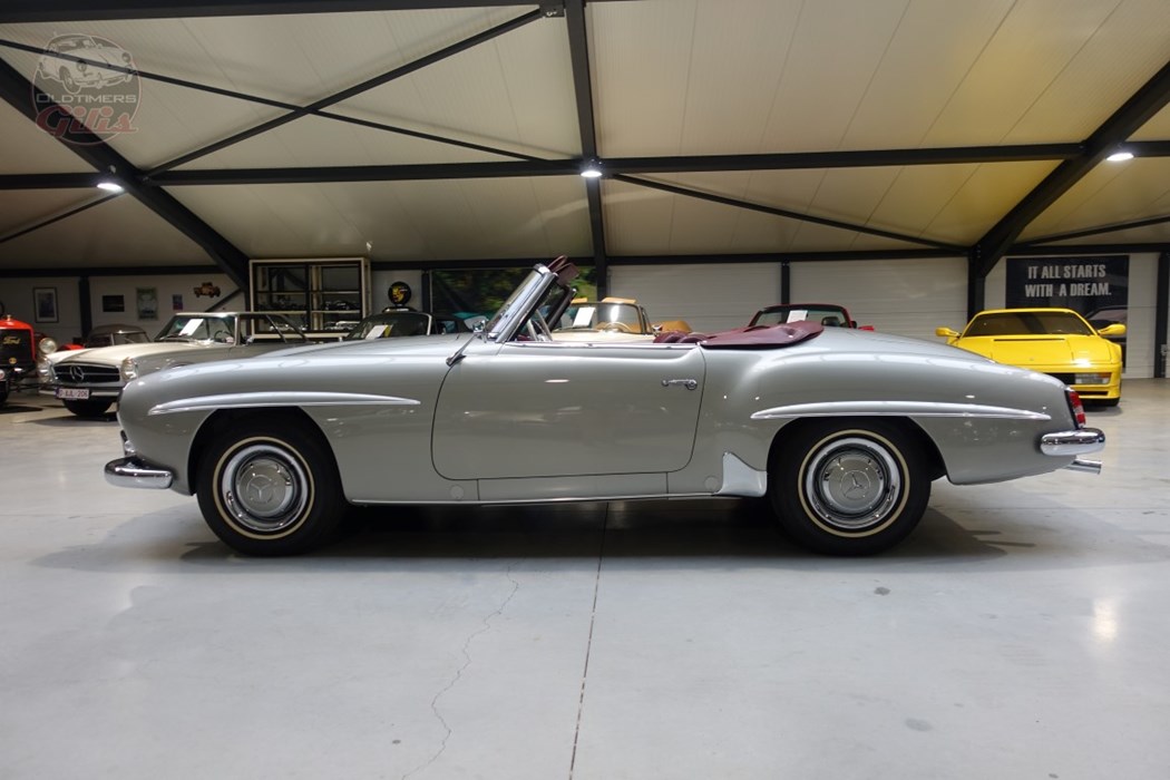 Finished in a stunning and timeless color combination, with a classic silver bodywork paired beautifully with a rich bordeaux interior, this 190SL exudes elegance from every angle. The harmony of colors perfectly complements the car’s graceful lines and understated sophistication.