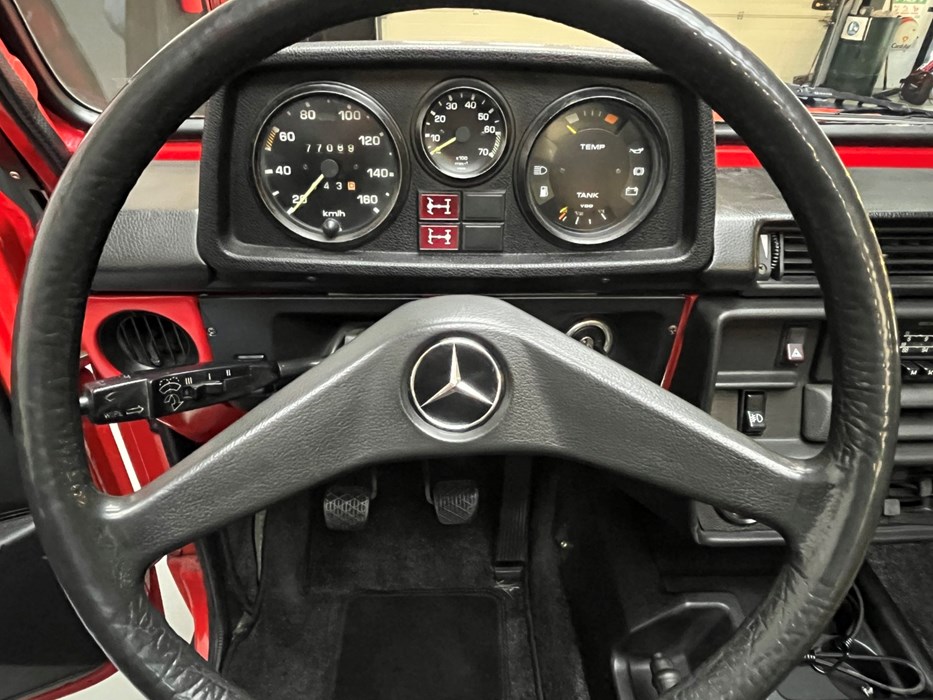 The G230 was an important milestone in the development of the G-Class. It was the first petrol-powered version, equipped with the smooth 2.3-liter four-cylinder producing 90 hp. Before this model arrived, all G-Wagons were diesel, so the petrol engine offered a more refined driving experience without compromising capability. The 1981 model year also brought an improved dashboard layout and power steering, making everyday use more comfortable than one would expect from an early off-roader.