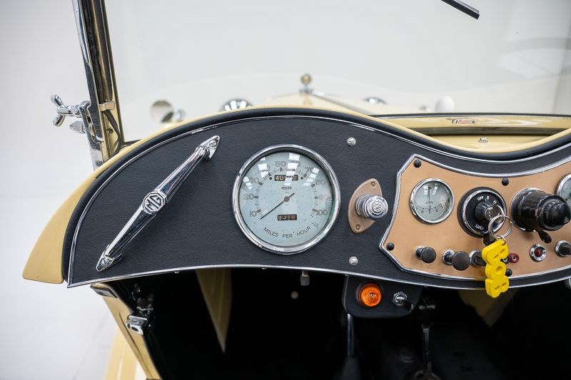 This example presents itself attractively in a classic beige colour and benefits from a good professional restoration. The renewed soft top and well-maintained finish provide a pleasant combination of authenticity and usability, making this MG particularly appealing to enthusiasts of traditional British roadsters.