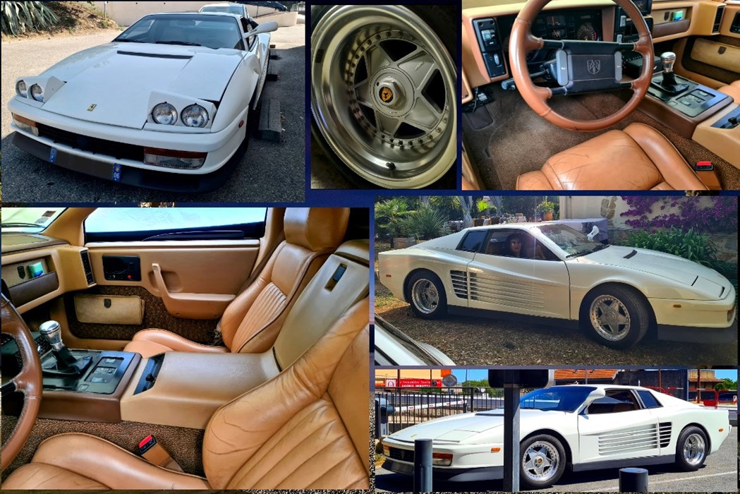 Base Pontiac Fiero V6, Carte grise francaise Normale, à mon nom, mentionnant Replique – Homologuée-. Contrôle technique ok. Inspiration Testarossa 2 flics à Miami - Miami Vice. Boite mécanique. Echappement inox performance, très belle sonorité. Inspiration modèle à rétroviseur unique. Monodado / Monospecchio. Trés nombreuses pièces neuves. Sort d’atelier spécialisé.
