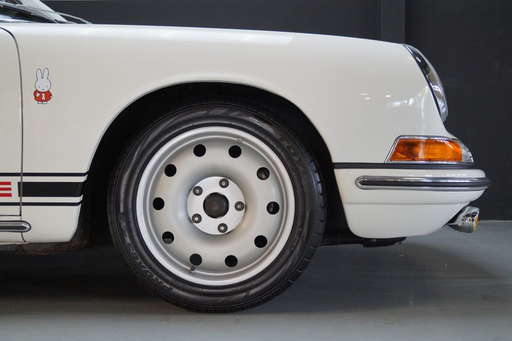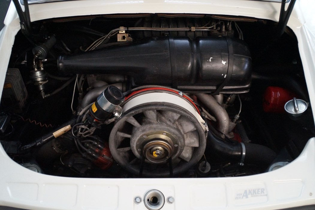 On the outside, it presents itself as a pristine Porsche 911 in classic Light Ivory, adorned with early golden decals and all the correct period details. Only the 16-inch aluminum racing wheels betray the true character of this machine – a subtle hint that beneath the elegant skin lies something far more purposeful.
