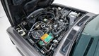 The interior is original and shows normal wear. The carpets and upholstery are consistent with the condition of a classic limousine from this period. The engine bay appears solid and original.