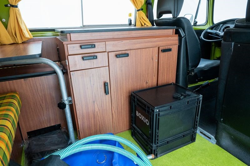 This 1978 example is presented in an older original condition, with the patina so typical of classic VW campers. The Westfalia conversion, sliding windows, camping interior, additional outdoor shower, and iconic Lime colour make this vehicle particularly popular with collectors and enthusiasts.