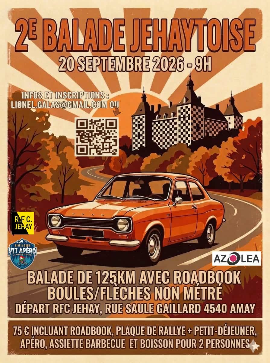 75€ comprenant roadbook, plaque rallye + petit-déjeûner, apéro, assiette barbecue et boisson pour 2 personnes.