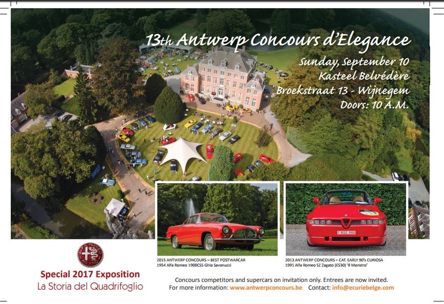 International Competition for special collectors. Location: Château Belvédère, Wijnegem. 2017 Theme Exhibition: Alfa Romeo, La Storia del Quadrifogio '