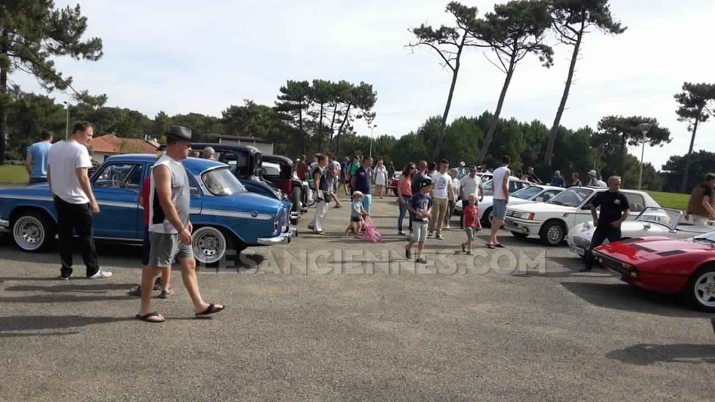 Flea market and animations around the old popular vehicles or exception to the bullring of Mimizan plage