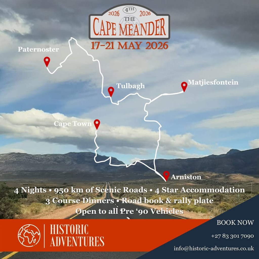 Meander your way through the Western Cape over 4 days and 4 nights, on the best roads the Cape has to offer. Open to all Pre ’90 vehicles.