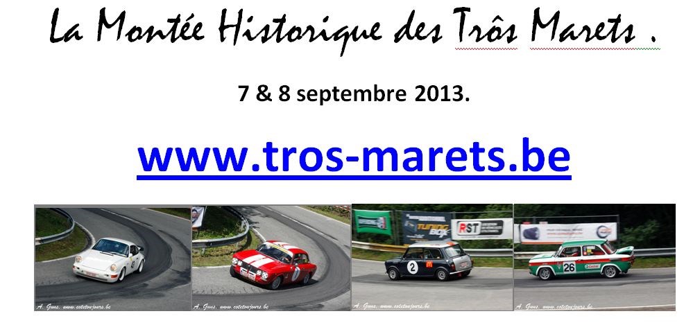 Les 7 et 8 septembre 2013, la Montée Historique des Tros Marêts accueillera au pied des Hautes-Fagnes des véhicules anciens, de 25 ans et plus. Six montées sont prévues chaque jour pour chaque participant. Aucune contrainte de chronomètre : uniquement le plaisir de rouler dans une ambiance «gentlemen drivers» !