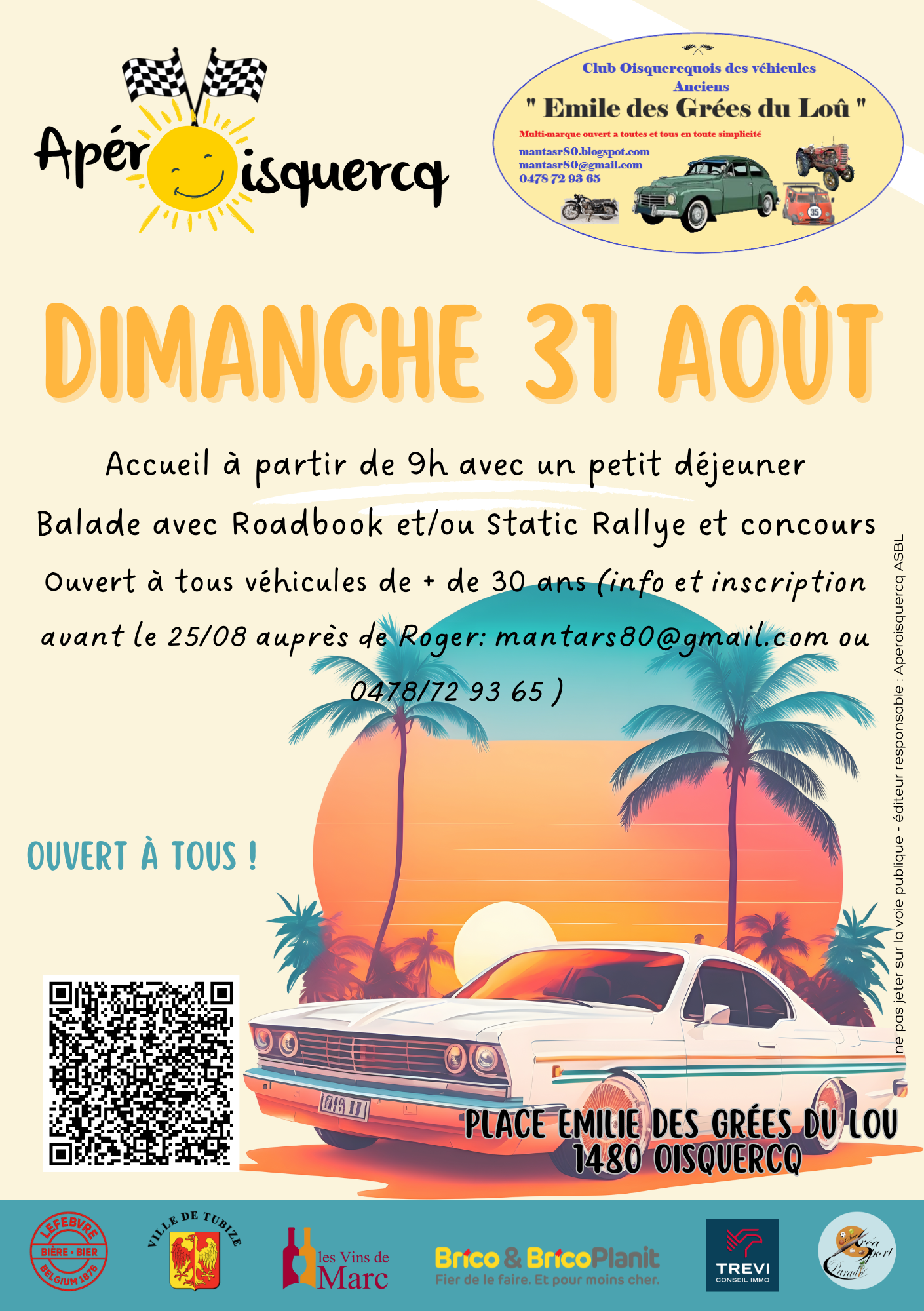 En partenariat avec le Club Oisquercquois des véhicules anciens "Emile des Grées du Loû", nous avons le plaisir de vous retrouver pour notre Static Rallye et/ou Balade avec Roadbook ainsi qu'un concours.